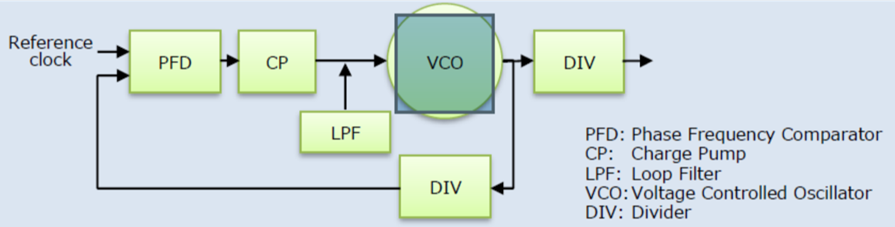 When the reference clock generated by the crystal oscillator is input to the PLL circuit, it can be adjusted to the target frequency and output according to the frequency division ratio of the frequency divider of the PLL circuit. But the jitter characteristics deteriorate due to the frequency adjustment of the PLL circuit. Finding out which part of the PLL circuit causes the deterioration of the jitter characteristics and improving it will lead to the achievement of the development goal - to break the trade-off between the jitter characteristics and the current consumption.