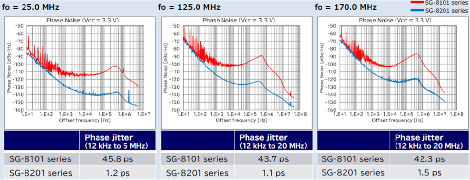 Figure 6. Comparison of phase noise and phase jitter characteristics (SG-8101 series vs SG-8201 series)